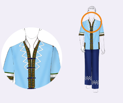 领型采用无领镶边设计,配以海南黎族花纹装饰,赋予民族文化内涵.