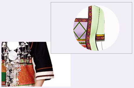 袖子借鉴黎族传统袖型,特色镶边,突出亮点,精致美观。