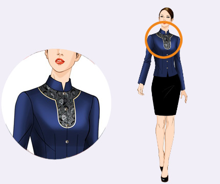 | 3. 短裙 工作服短裙借鉴满族旗袍样式,结合现代服饰特点,舒适美观。